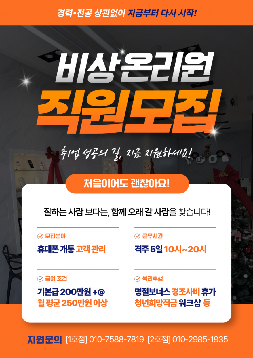 통신3사휴대폰<비상!OnlyOne>직원구합니다^^ 페이지 정보 작성자 일OO손 작성일26-01-02 17:05 조회26회 연락처 010-7588-7819 급여 월급 : 250만원 이상 관련링크 본문 - 주소 : 제주 제주시 월랑로 8길 1 이전글 다음글 목록