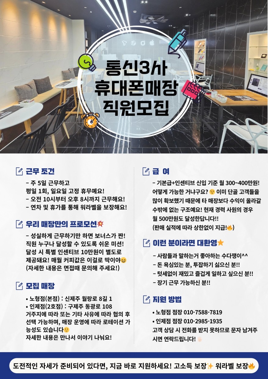 성실하게 근무할 남녀 직원을 찾습니다! (21세 이상 가능) 페이지 정보 작성자 aOOOOO2 작성일26-03-30 09:09 조회54회 연락처 010-7588-7819 급여 월급 : 315만원 관련링크 본문 - 주소 : 제주특별자치도 제주시 월랑로8길 1 아란야플라자 이전글 다음글 목록