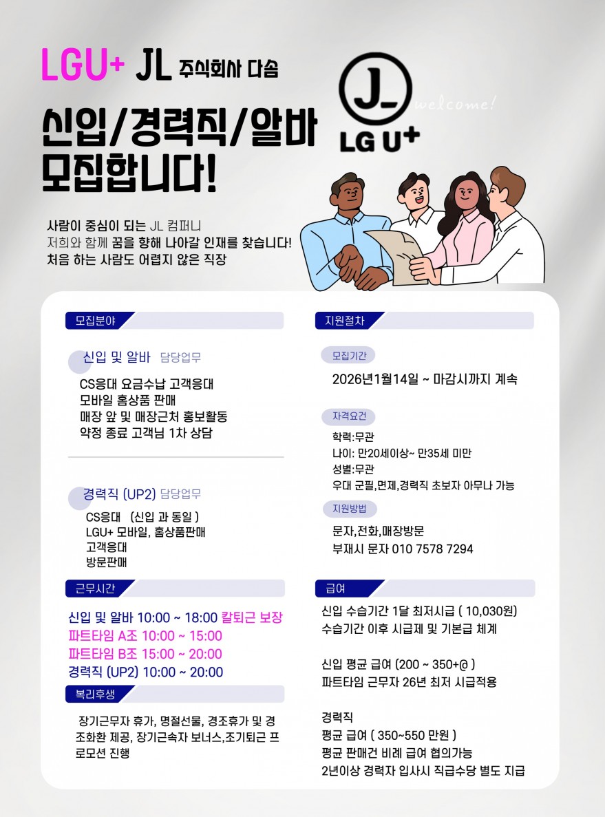JL 정직원,알바,경력직 모집 같이 돈 많이 벌어가실분들 환영합니다 페이지 정보 작성자 제OOOO니 작성일26-03-21 11:07 조회30회 연락처 010-7578-7294 급여 월급 : 400만원+@ 관련링크 본문 통신업 배우며 같이 일하실 분 구합니다!! 주소 : 제주특별자치도 제주시 중앙로 76 1층 엘지유플러스 이전글 다음글 목록