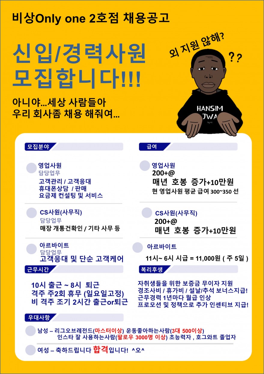 비상Onlyone 2호점(인제점) 에서 직원을 구해버립니다! 페이지 정보 작성자 비OOOOOOOOO5 작성일24-06-04 16:12 조회12,498회 연락처 010-7541-2818 급여 월급 : 200+@ 관련링크 본문 편하게 연락주세요!언제든 열려있습니다010 7541 2818 주소 : 제주특별자치도 제주시 동광로 108 제주은행동광로지점 이전글 다음글 목록