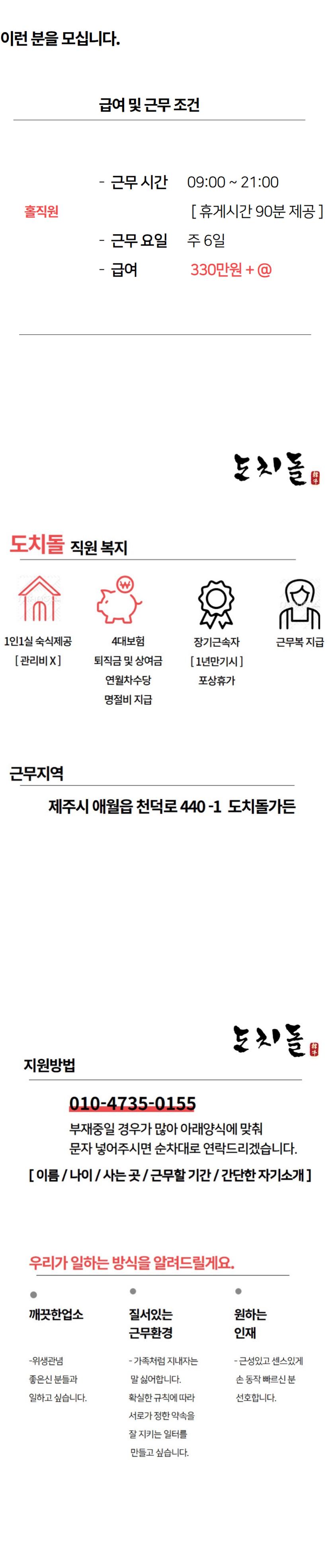 [숙식제공/1인1실]_330만원_홀직원_모집 페이지 정보 작성자 gOOOOOOOOO8 작성일25-09-23 07:09 조회1,144회 연락처 010-4735-0155 급여 월급 : 330만원 관련링크 본문 . 주소 : 천덕로440-1 이전글 다음글 목록