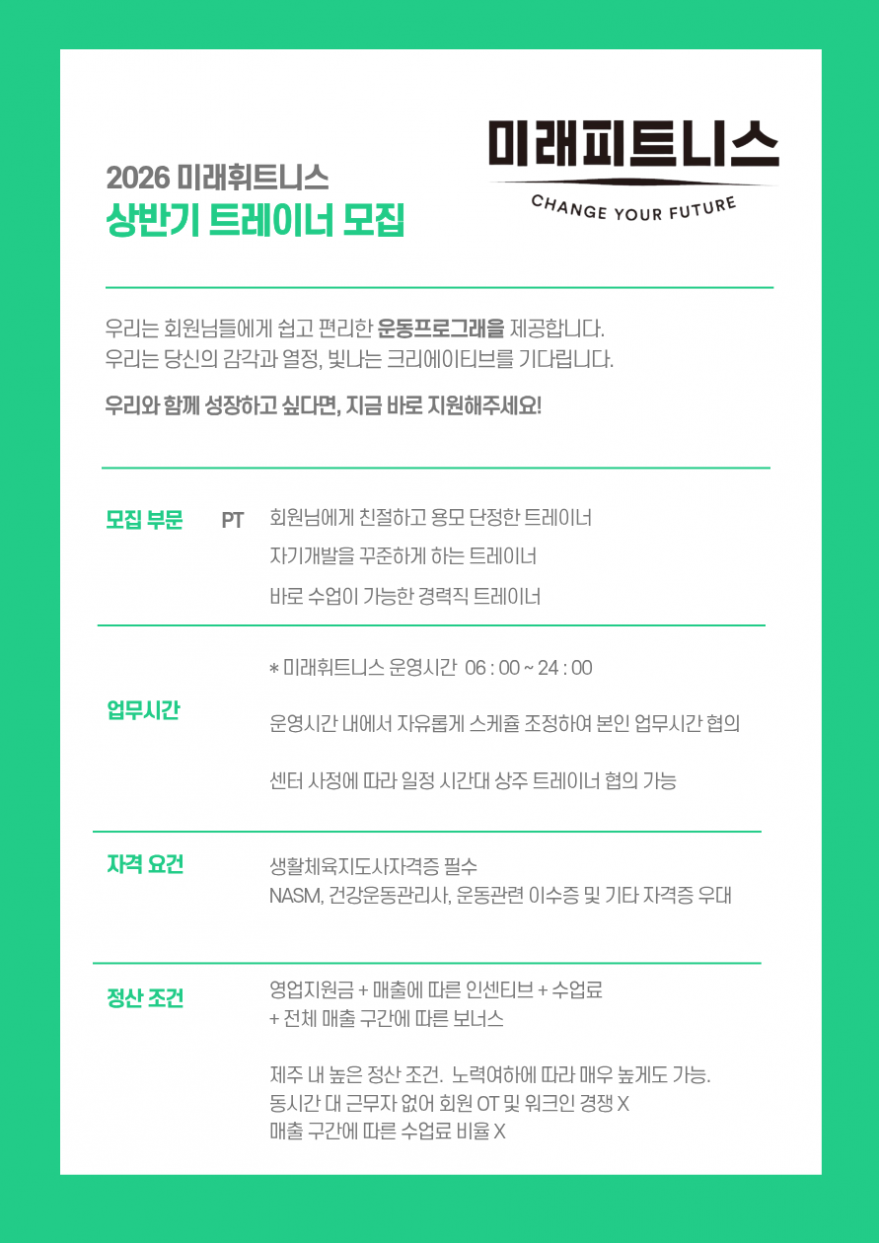 제주 하귀 미래휘트니스 트레이너 구인