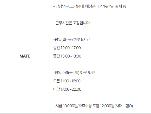 올리브영 제주연동신라점 MATE 구인합니다. 페이지 정보 작성자 연OOO점 작성일24-06-14 16:07 조회4,353회 연락처 010-5346-1221 급여 시급 : 10000 관련링크 본문 - 채용 관련 문의 시 채용 담당자 연락처로 문자 혹은 메일로 연락 부탁드립니다. 메일주소 : mirryun7553@cj.net 주소 : 제주특별자치도 제주시 노연로 49 올리브영제주연동신라점 이전글 다음글 목록