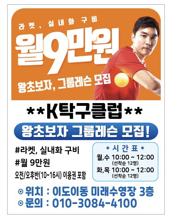 k탁구클럽 오전반 레슨 할인모집!!!